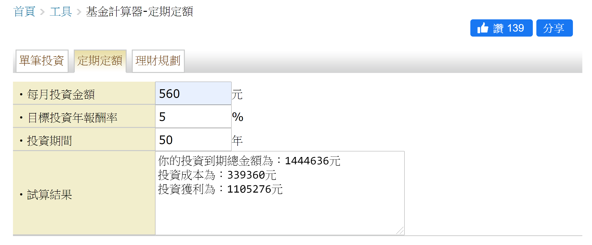 答案是:以 3% 複利計算是 700,257 元,以 5% 複利計算是 1444 ,636元。 70 萬跟 140 萬,是不是差很多呢?